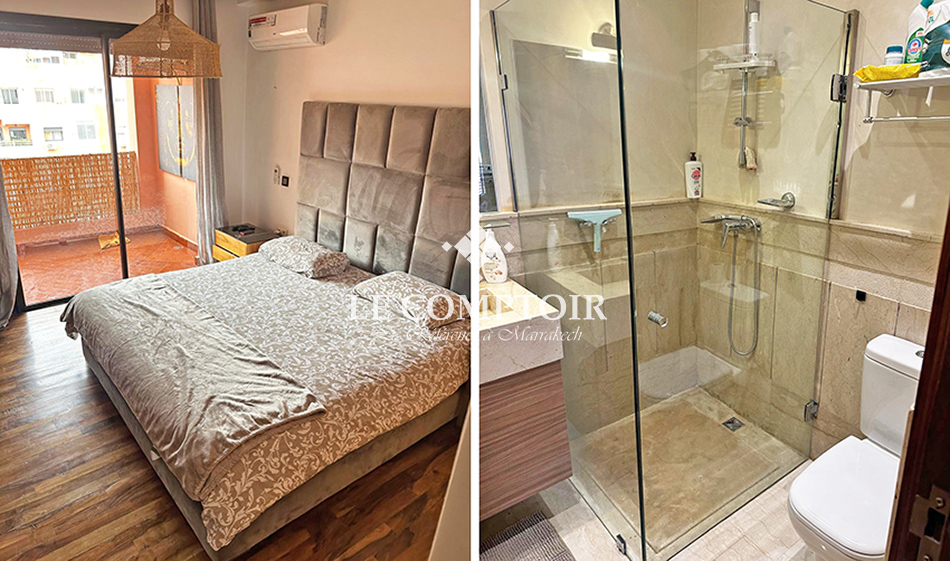 Notre agence immobilière Le Comptoir de l’Immobilier vous propose ce sympathique appartement meublé et équipé à la location, situé en plein centre ville de Marrakech.